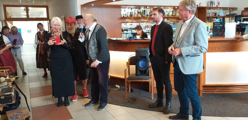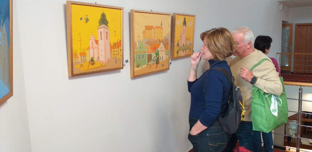 Galerie Záliv Lázně Bechyně opět praskala ve švech, poněvadž vernisáž výstavy obrazů Valentina Horby nahrnula lidí, jak do ranního vlaku. Horbova šprťouchlata, vyšvihnutá na návsích, před kostely, v uličkách a u rybníků, dýchala jihočeským domovem. Dojemně laskavým domovem, kde žije legrace. Do světa se tu také rozletěl nástěnný kalendář 2026, kterému slovem popřáli roční dlouhověkost hosté: senátor a ředitel Nemocnice Strakonice Tomáš Fiala, ředitel Agentury profesního rozvoje a podpory aktivit Ministerstva obrany Pavel Vobůrka, herec a moderátor Petr Jančařík a jakby ne, i starosta města Štěpán Ondřich. Zahrála a ke zpěvu publikum navedla Pošumavská dudácká muzika. Horbovy obrazy připomínají národní strom, lípu, která sílí kolem pasu, voní ve větvích a zůstává s námi stovky let. Čaj z jejích květů léčí, koruna dopřává blahodárný stín. Malíř se dožil mimořádné obliby a přitom zůstal skromný a hlavně štědře přátelský. Návštěvníky pohostil chlebem (obloženým chlebíčkem) a buchtou (ovocným dortem s želé). Padlo jich dohromady 140 kousků! Několik jeho obrazů si hned připnulo botičky a odcupitaly do nových míst.